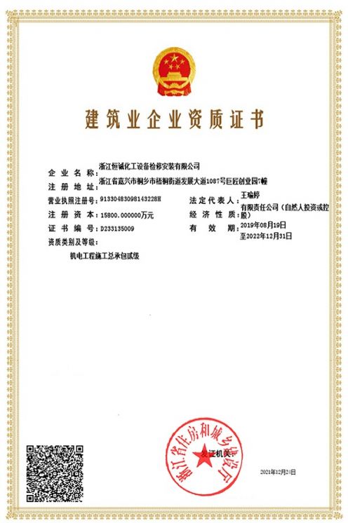 Construction Enterprise Certificate