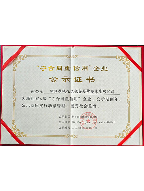 "守合同重信用"企业公示证书