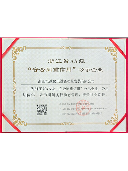 AA级浙江省“守合同重信用”企业